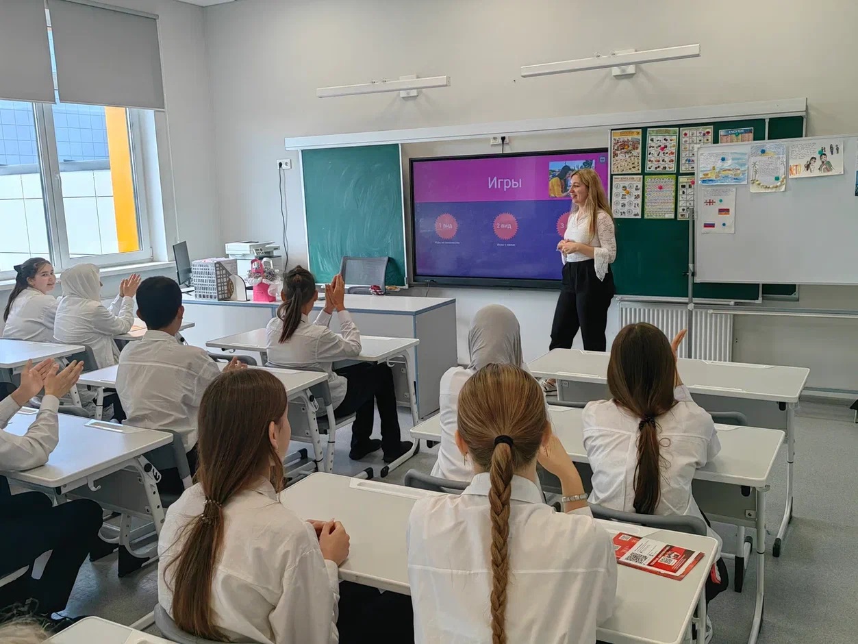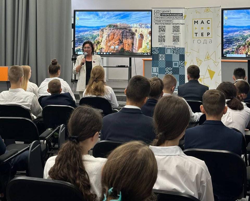 Перед ребятами выступила Ульянова Эльмира Эдуардовна, преподаватель ГАПОУ «Казанский педагогический колледж», финалист Всероссийского конкурса среди педагогических работников системы СПО «Мастер года». Она познакомила школьников с различными аспектами профессионального развития, а также методами и инструментами для выбора будущей сферы профессиональной деятельности. Эльмира Эдуардовна рассказала ребятам о том, что выбор профессии зависит от различных факторов, включая биологические особенности человека, его социальное окружение и индивидуальные предпочтения. Биологический фактор человека подразумевает его генетические особенности, анатомо-физиологические возможности и склонности к определенной деятельности и таланты. Социум также влияет на человека через окружение и общественные тренды. Выбор профессии, которая соответствует интересам подростка, поможет в будущем получать удовольствие от работы и быть более мотивированным.