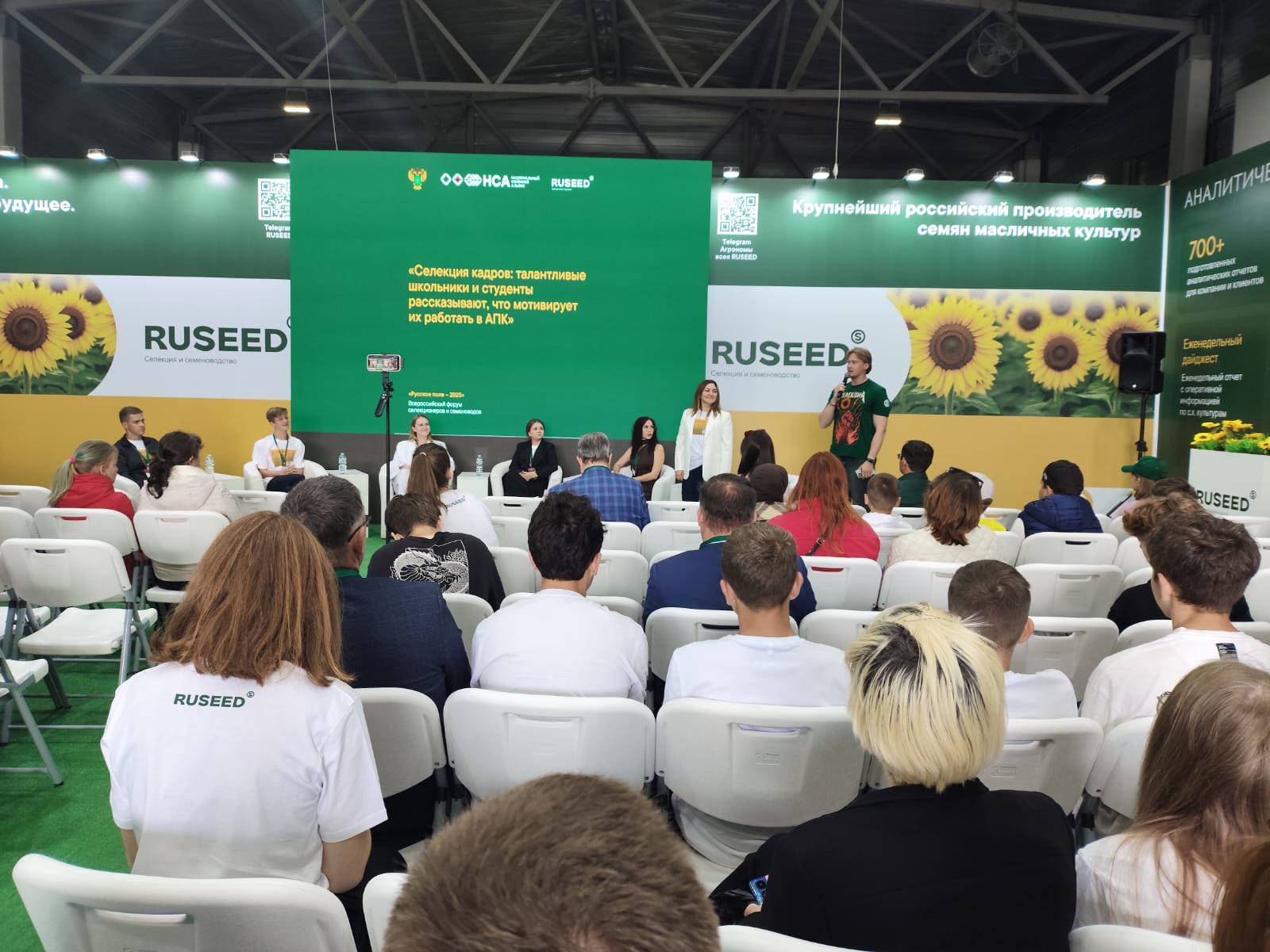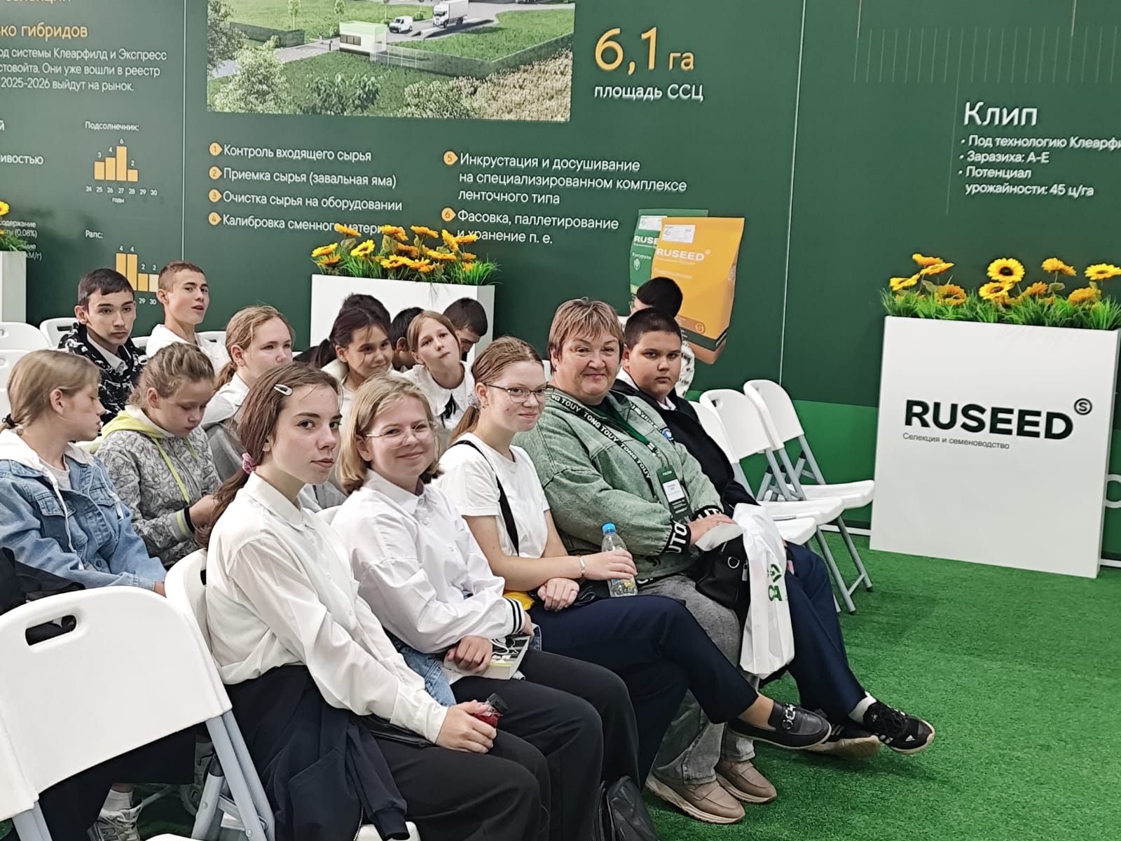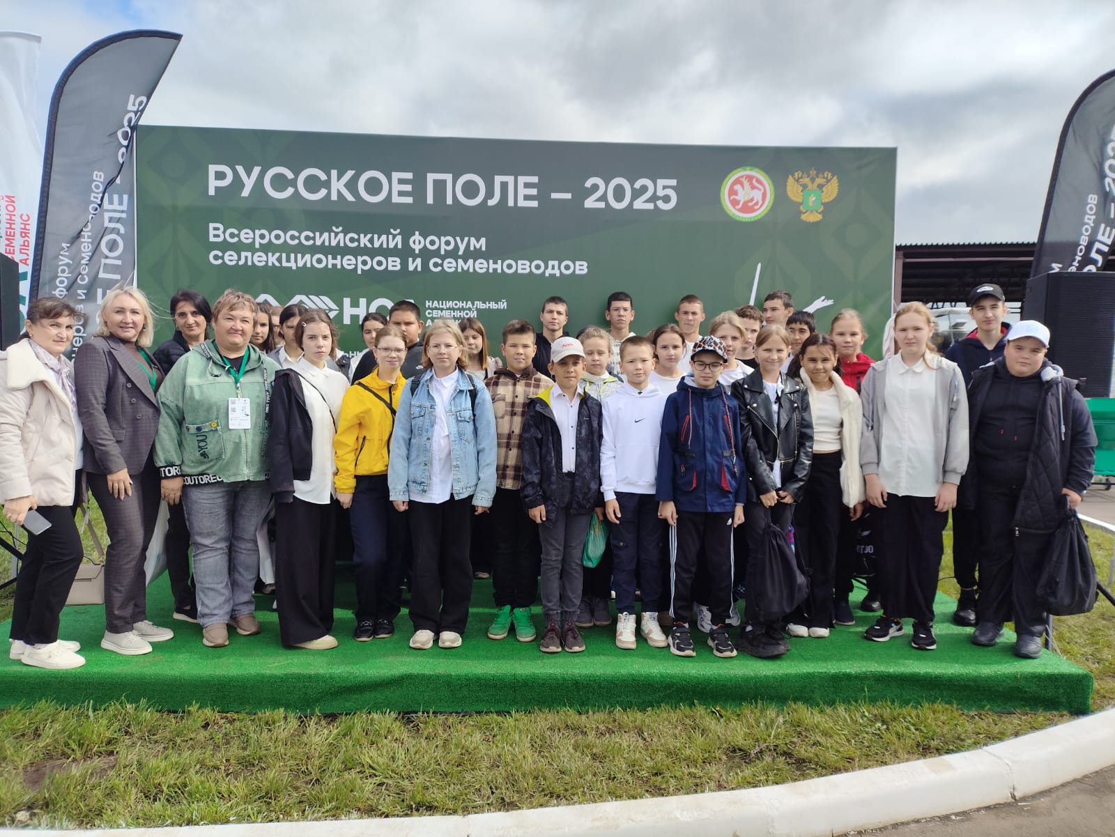 20 августа 2025г. в Республике Татарстан прошел II Всероссийский форум селекционеров и семеноводов «Русское поле – 2025». В рамках Форума прошло много встреч, круглых столов и семинаров для специалистов аграрной промышленности. Учащиеся агроклассов общеобразовательных организаций Лаишевского муниципального района – участники проекта Единая модель профориентации «Билет в будущее» - посетили Форум и приняли участие в работе круглого стола на тему: «Селекция кадров: талантливые школьники и студенты рассказывают, что мотивирует их работать в АПК». Обучающиеся агроклассов представили свои проекты. Также школьники познакомились с проектами представленными участниками из Воронежа, Кубани и Краснодара. Все они направленны на инновации, которые позволяют развивать АПК. Также на территории «Агробитехнопарка» организована выставка достижений в области механизации и селекции растений, которую могут посетить все желающие.