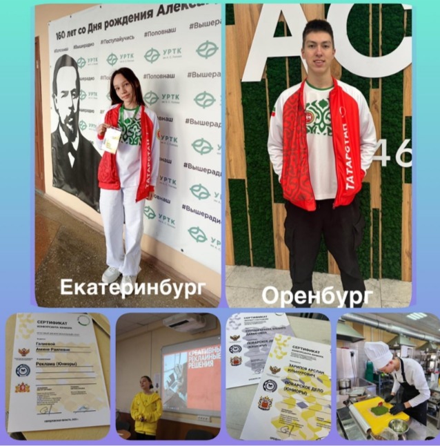 в компетенции «Поварское дело» - Зарипов Арслан, 9 класс, занял 1 место в Республике Татарстан и принял участие в г.Оренбург на Российском этапе, заняв призовое место; в компетенции «Рекламное Дело» Абдулхаева Салима заняла 2 место, ученица 8 «Д» класса Галиева Амина победила в Чемпионате в Республике Татарстан, представила республику на заключительном этапе в г.Екатеринбург.