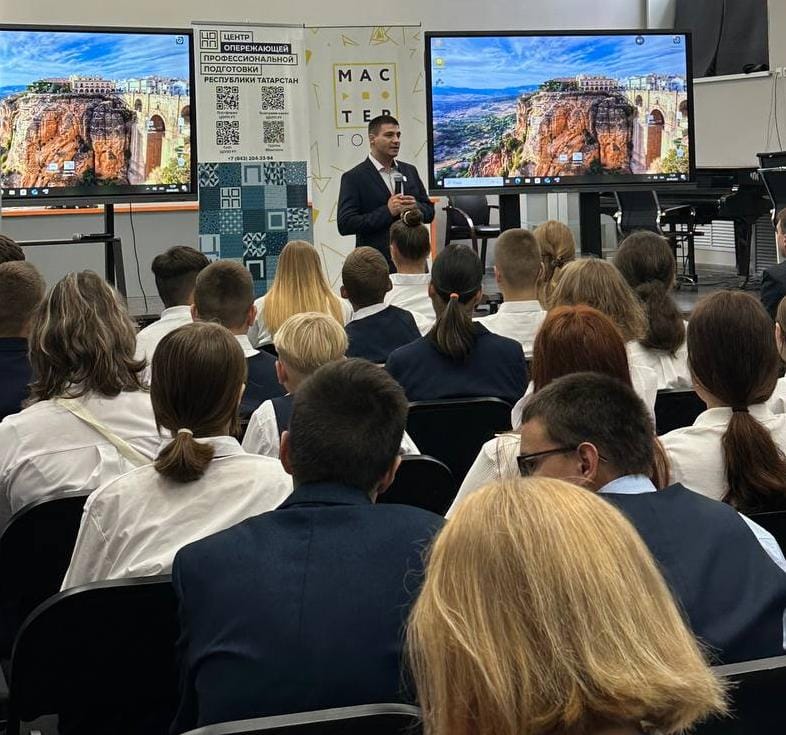 4 сентября 2025г. в рамках реализации федерального проекта Единая модель профориентации «Билет в будущее» в Республике Татарстан для обучающихся образовательных организаций г.Казани прошел Фестиваль профессий. Мероприятие, организованное Центром опережающей профессиональной подготовки РТ, посетил Д.Г.Медведев, абсолютный победитель Всероссийского конкурса среди педагогических работников системы среднего профессионального образования «Мастер года» 2024г., директор Колледжа информационных технологий (г.Курск), советник Министра просвещения Российской Федерации на общественных началах.